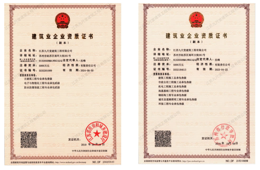 “九層之臺(tái)、起于累土;九尺之堂、始于微末”。江蘇九尺堂建筑工程有限公司自重組以來(lái),經(jīng)歷了數(shù)年的輝煌歷程。公司地處以園林典雅聞名天下的中國(guó)蘇州。集建筑、山水、花木、雕刻、書畫等于一體的蘇州文化藝術(shù),成為了九尺堂人孕育靈感與迸發(fā)激情的沃土。